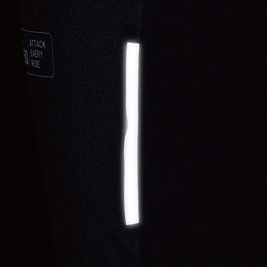 走行中に風を受ける前身頃と袖は、薄手の防風素材「ウィンドシェル」と裏起毛素材の二重構造で保温性を確保。- 薄くて軽量、ストレッチ性のある素材、ウィンドシェル採用
