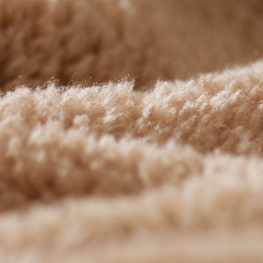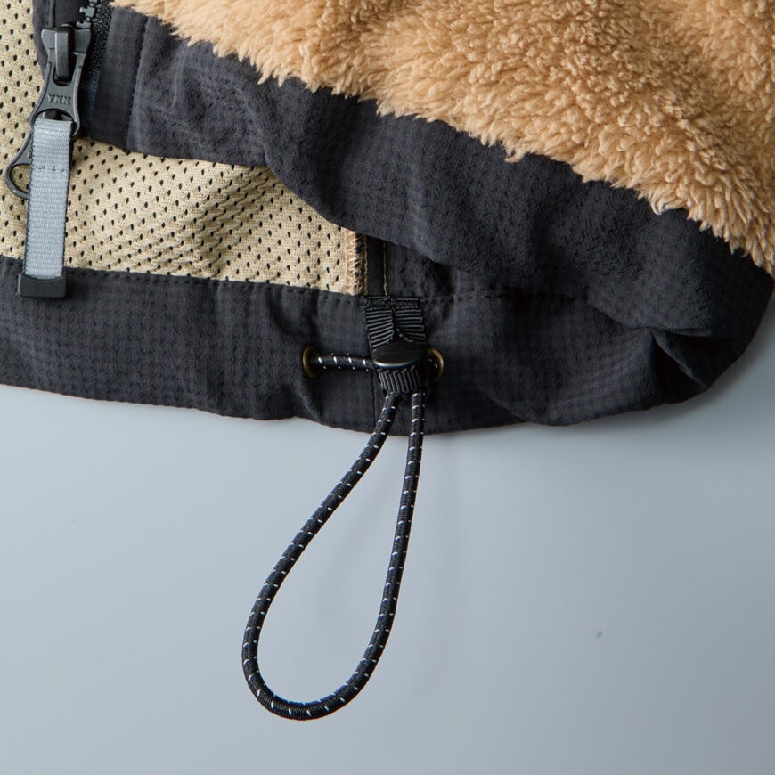 環境に配慮した再生ポリエステルを用いた、柔らかくストレッチ性のあるボアフリース素材を採用