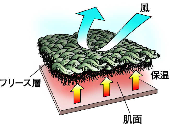 | 保温 | 温かさを保ち汗冷えしない素材 |