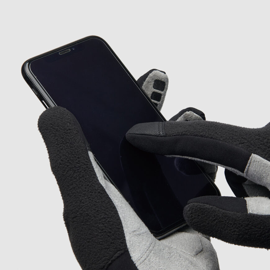 ストレッチ裏起毛素材を採用した柔らかな着用感と優れた操作性を備え、着用したままタッチパネル操作も可能です。- 手の平のパッド厚:中厚
