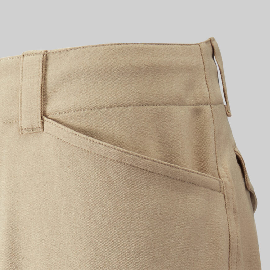 ストレッチ性に優れ、動きやすいツイル素材を採用。裾が絞れる仕様やカーゴポケット、再帰反射タグなど自転車に必要な機能を備える。