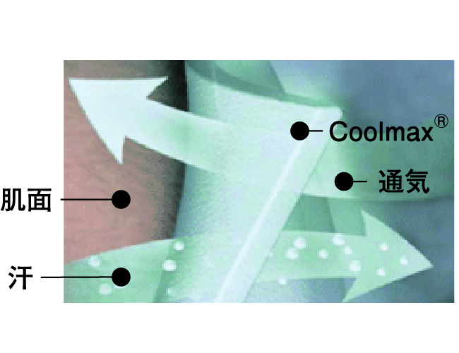 | 吸汗速乾 | 汗を吸い、瞬時に乾かす素材 |