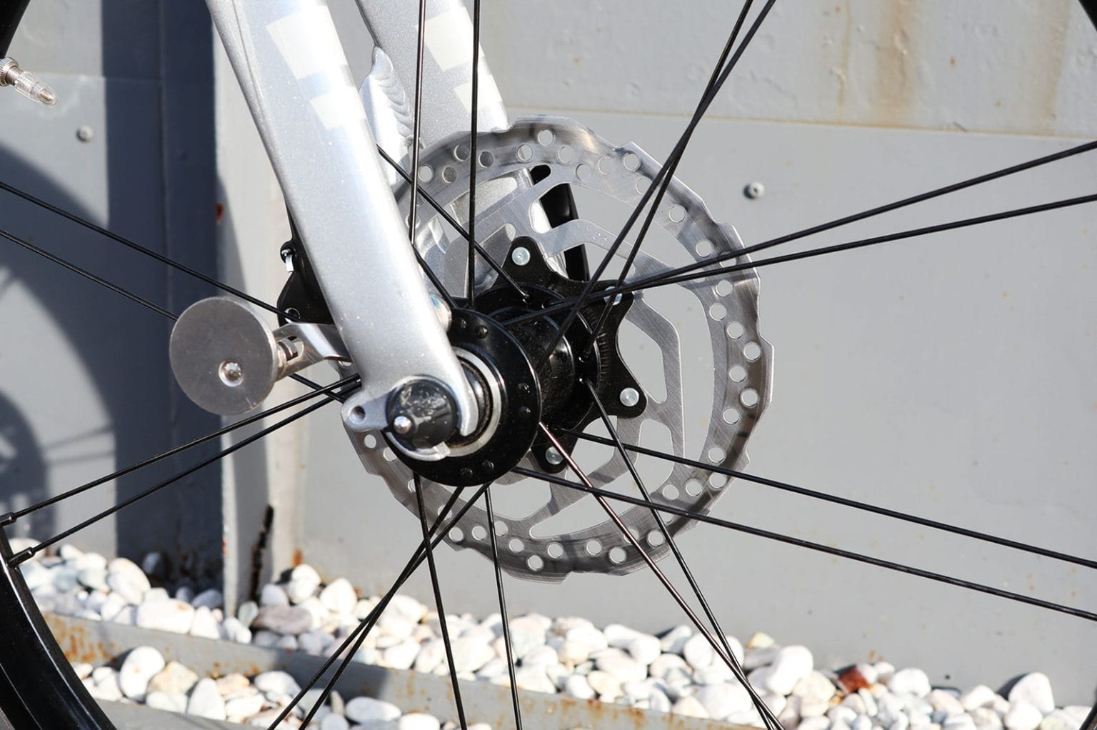 Shimano製油圧ディスクブレーキにより、悪天候でも制動力が下がることなく、安全に停車することができます。