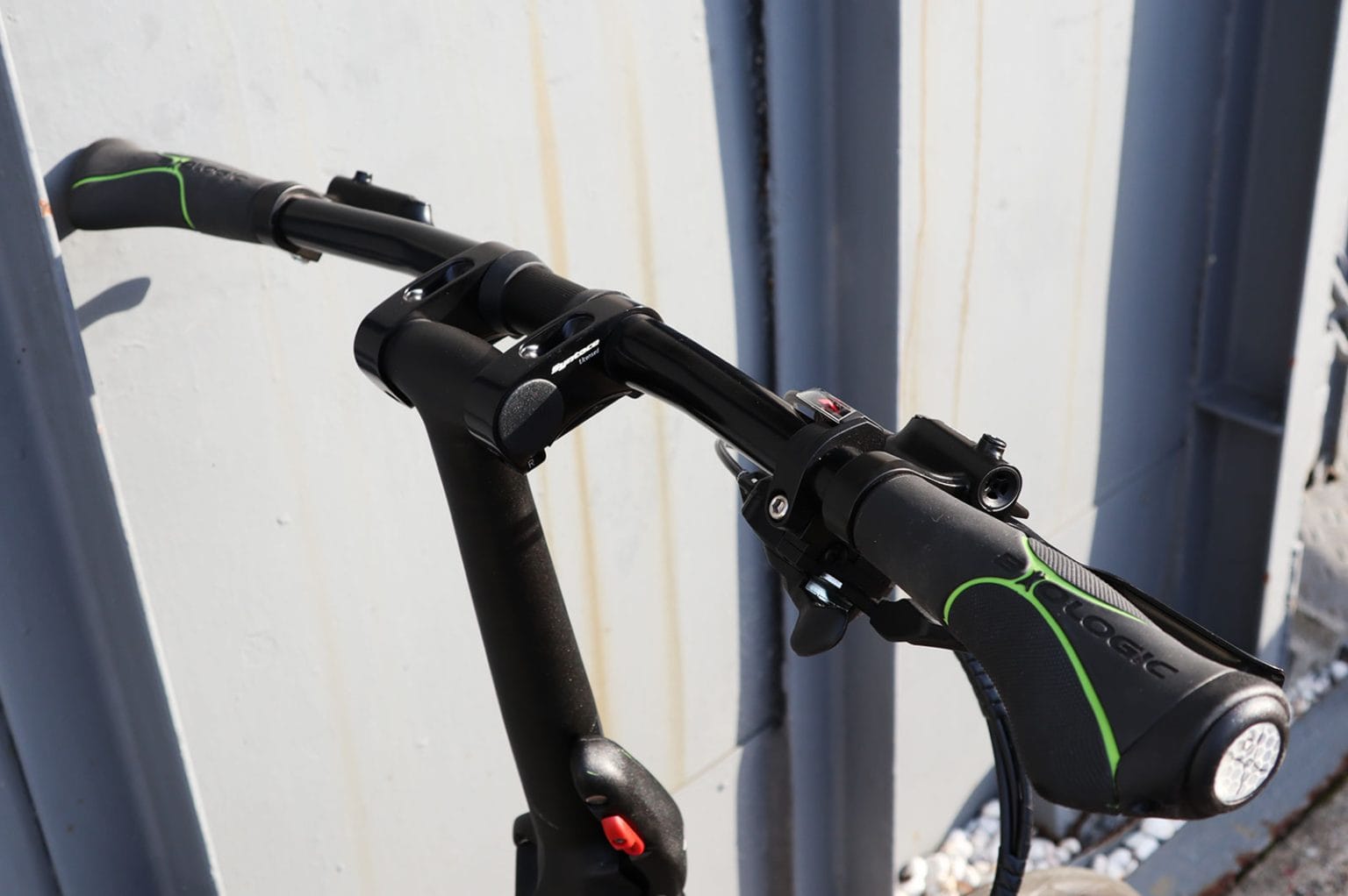 Tバーハンドルポストには突き出し47mmのVROステムが装備されており、-45度~+90度までポジション選択することが可能。