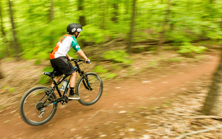 キッズ用マウンテンバイクDYNAMITE。頑丈なアルミフレームにサスペンションフォーク搭載で本格的なトレイル走行を楽しめる。