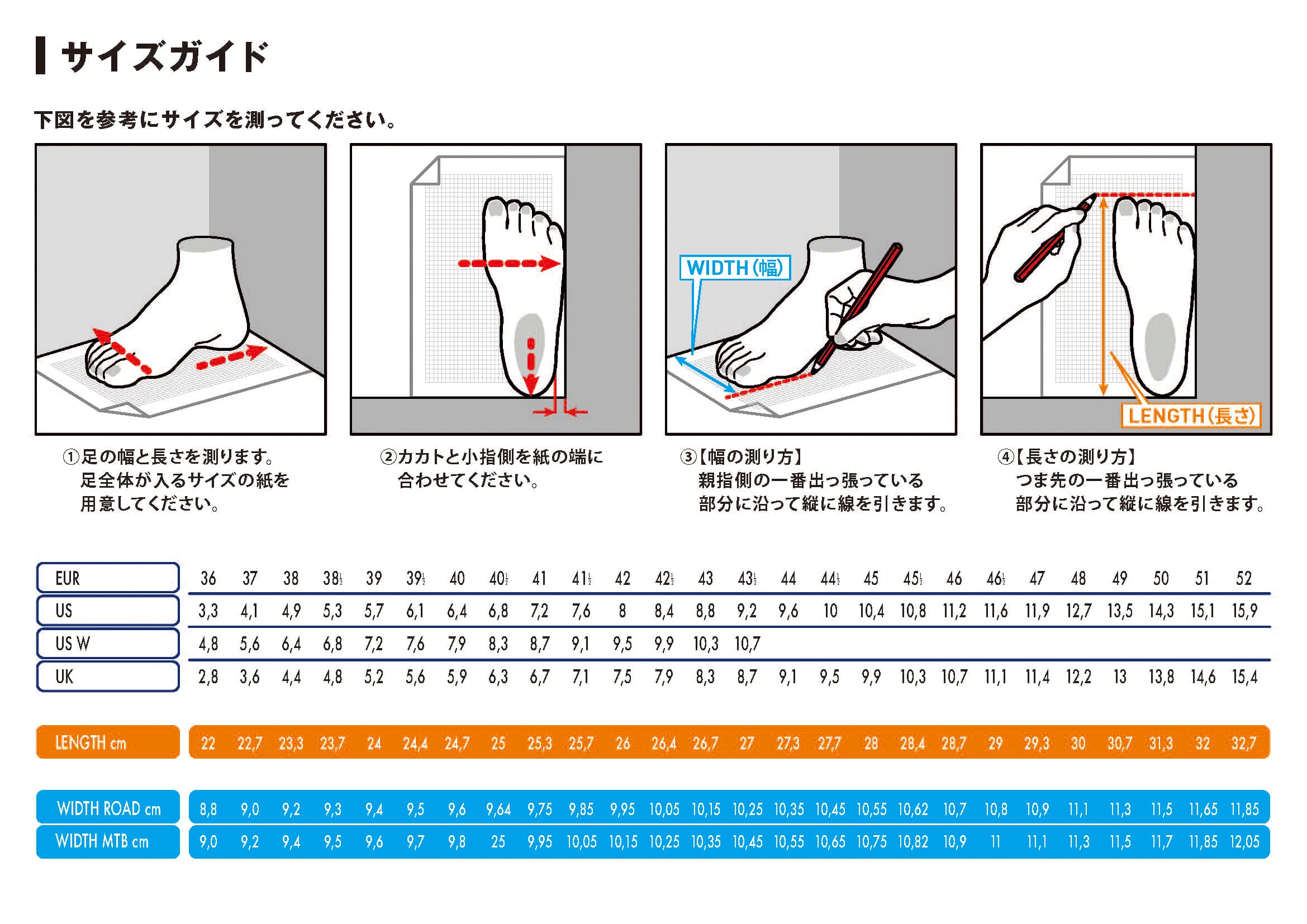 一般的なD~Eワイズ相当のラスト形状となっており、 平均的なアジア人の足型にフィットします。仕様