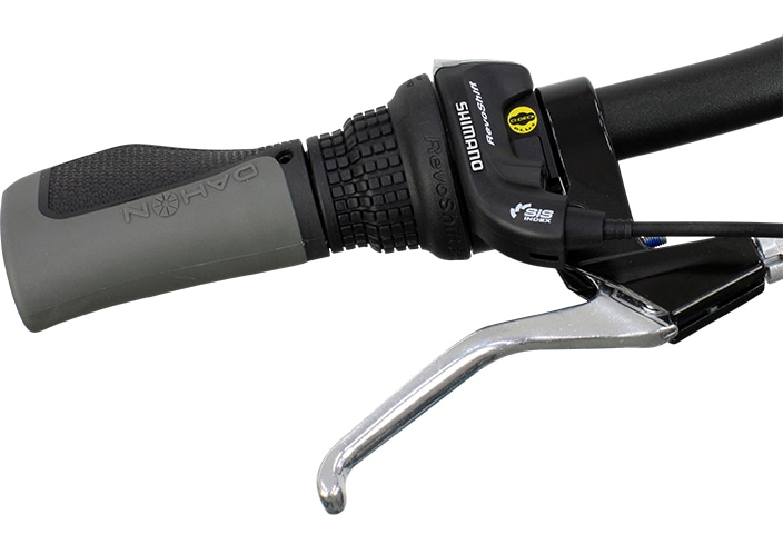 グリップは手の平にフィットしやすいエルゴタイプを装着しており快適な走行が楽しめる。