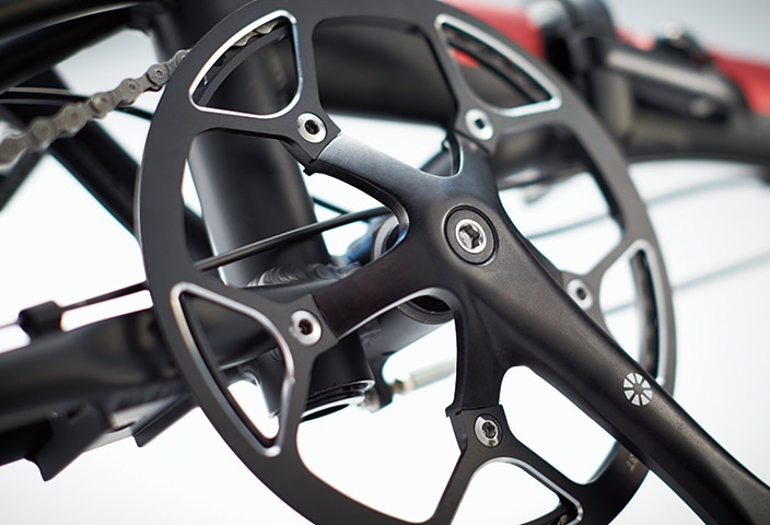 53Tのチェーンリングとリア9/13/17Tのスプロケットにより14インチとは思えない満足感ある走りを叶えてくれる。