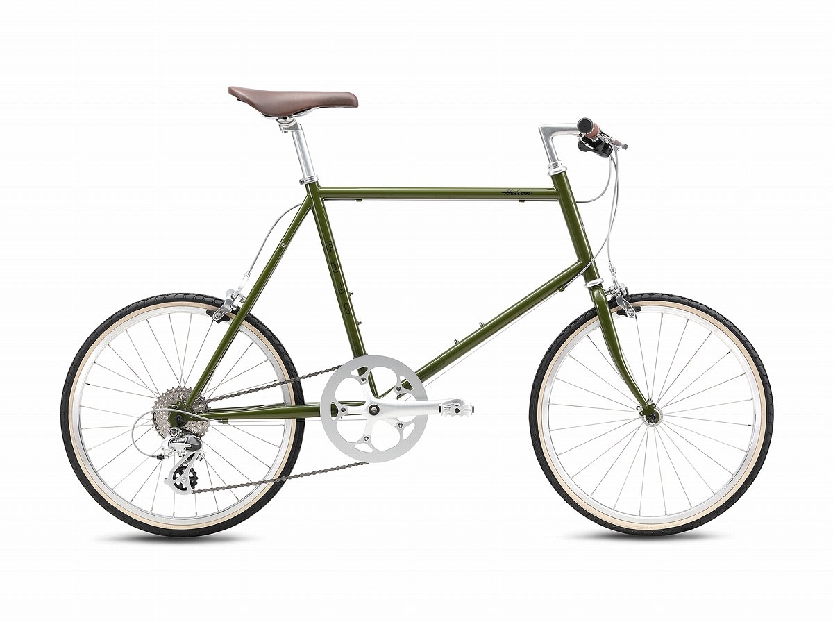 走れるミニベロをコンセプトに、スポーティな走行性能へのアイデアが詰まったミニベロ「ヘリオン」。街中での機動力と走行性能を両立するフラットハンドルと451ホイールの組み合わせは、用途を選ばず日常のパートナーとしても最適。スキンサイドタイヤにポリッシュリム搭載のクラシカルな佇まいと合わさって、ワンランク上のライフスタイルを演出する。