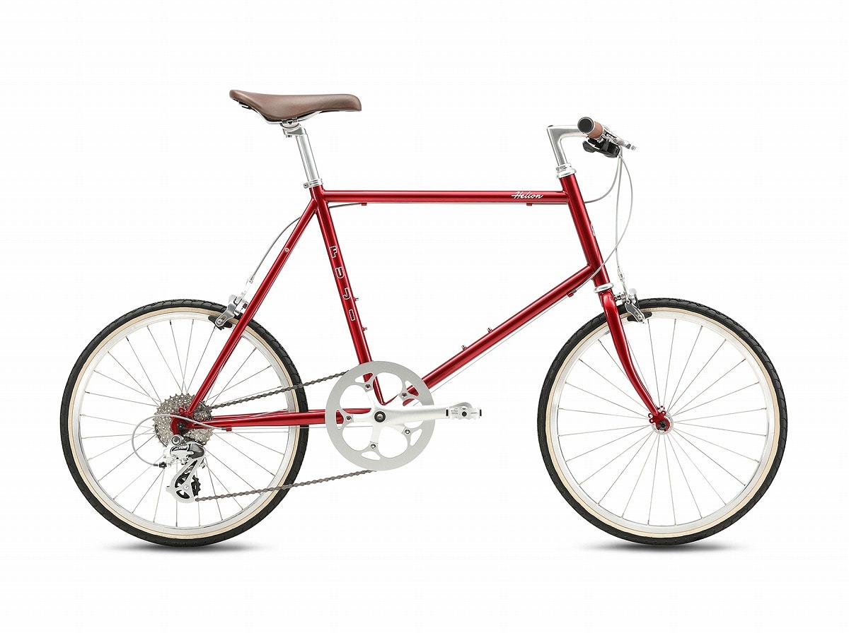FUJIのスポーツミニベロHELIONシリーズのフラットハンドルバー採用モデル。こだわりのバテッドクロモリフレームには一般的なクロモリチューブよりひと回り小さな径が採用され、スキニーなビジュアルとシャープな走行性能を両立。さらにやや大きめの角度が設定されたシートチューブアングルとの組み合わせにより、街中での機動力にも磨きがかかる。質感の高いポリッシュカラーを纏ったホイールはレトロなルックスを演出する一方で、451サイズの採用によって走行性能も抜かりなし。4455cmの幅広いフレームサイズ展開で、小柄な女性から背の高い男性までジャストフィット。