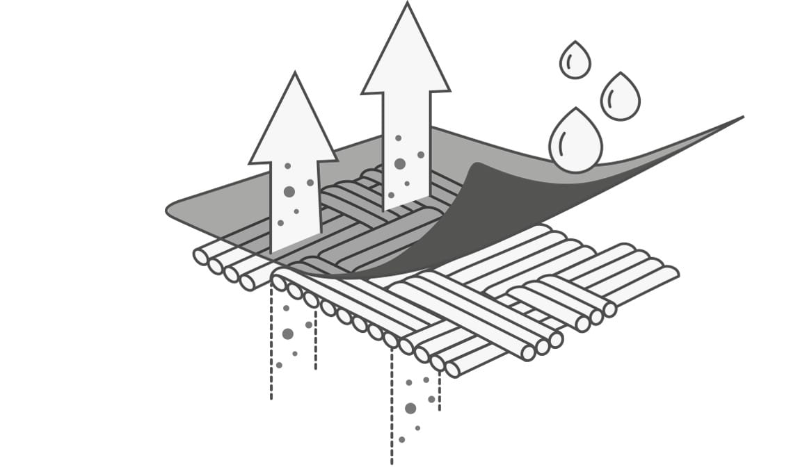 体温調節機能と通気性を損なうことなく、湿気を遮断します。