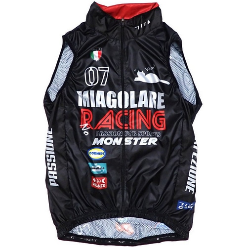 | 素材 | 軽量薄手の防風ベスト。背中はメッシュ素材 |
