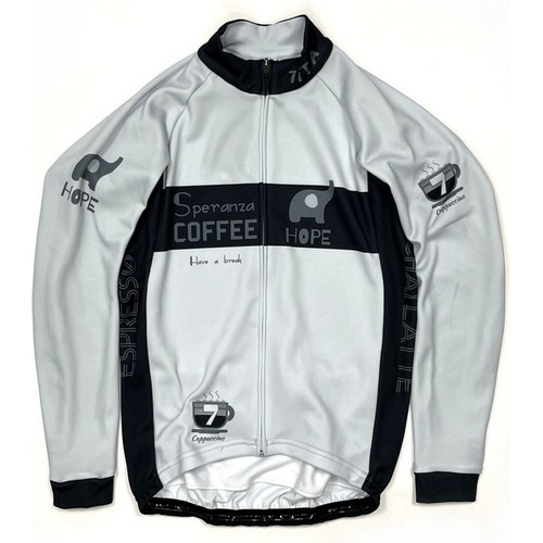 定番的な人気のコーヒー柄デザイン・ジャージ、今回はゾウがモチーフです。どんなに激しいライドでも、カフェの居心地のよさをイメージして少しだけリラックスされる事を願っています。