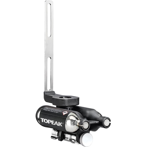 手持ちのボトルケージ下側にCO2インフレーターとカートリッジを取り付けることができます。