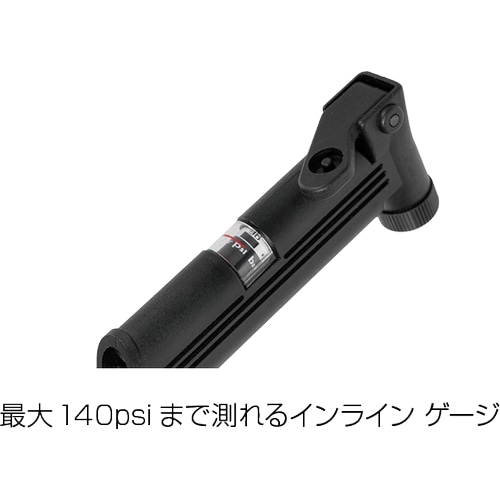 | その他仕様 | ・仏式/米式に組替えできる口金 ・最大140psiまで測れるインライン ゲージ付 ・最大160psiまで充填可能 ・1ストロークの空気量 : 82cc ・加圧しやすいT型ハンドル ・アルミ合金 シリンダー ・360°回転できるホース マウント部 ・フレーム装着用クランプ付属 |