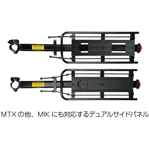 トピークMTX QuickTrackパネルを搭載し、MTX 1.0 / 2.0システムのバッグやバスケットに対応しています。キャリア部のパネルを反転させることで、他ブランドのバッグやバスケットにも対応可能です。