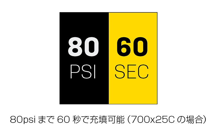 | 仕様・機能 | ・仏式、米式に対応する口金 ・最大120psiまで測れるフルカラー ディスプレイ デジタルゲージ ・psi、bar、kg/cm2 対応 ・精度 : ±2PSI ・バッテリー(7.4V/500mAh) ・USB充電可能(Type-C) 充電時間 : 約45分 ・空気圧プリセット/オートストップ機能 ・オートオン/オフ機能 ・LEDライト機能 ・過熱保護機能 |