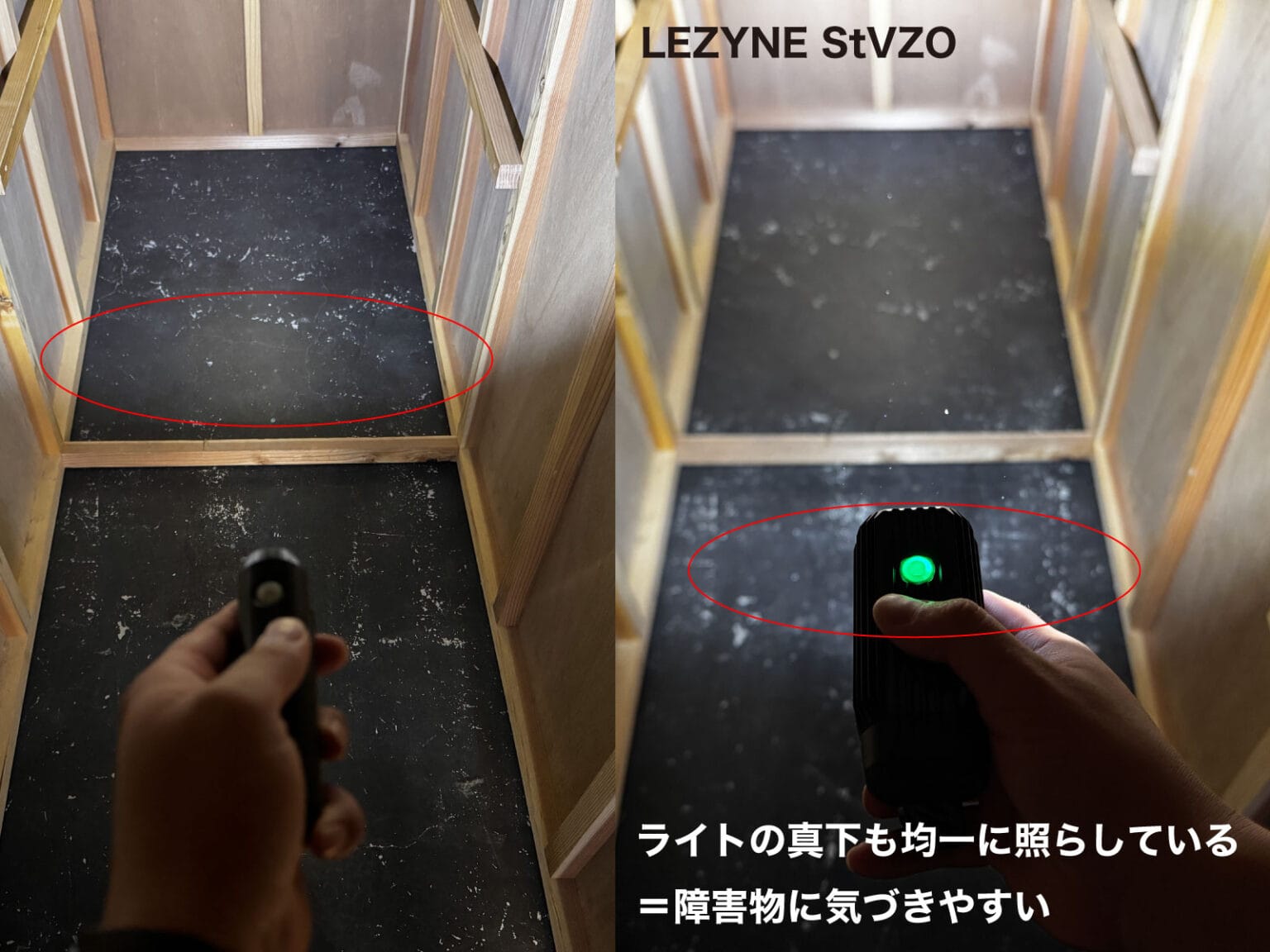 LEZYNE StVZOライトは、ライトの向いている方向だけでなく、ハンドルの真下もしっかりと照らすことができます。