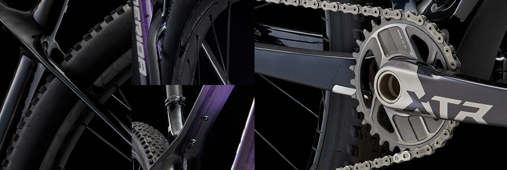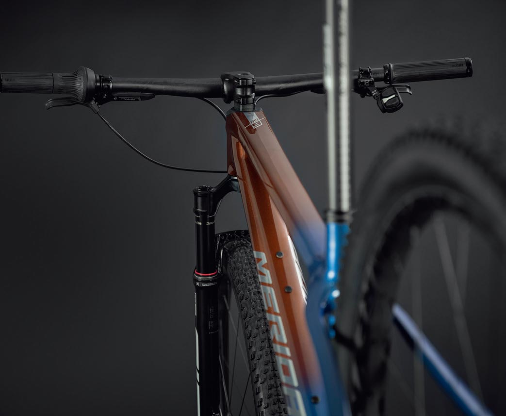 完全ワイヤレス変速を実現した新型Shimano XTRは-20mmのグラウンドクリアランスを手に入れた変速機やプログラム可能なシフトレバーを持つラピッドファイアエルゴシフト、モーター駆動でディレーラー破損を防ぐ構造などクロスカントリーのための最新装備を採用。数々のXC世界選手権を制してきたメリダのXCレーサーの頂点となるモデル。