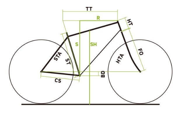 | TOP TUBE (TT) | 50500% | 520 | 536 | 545 | 560 | 575 |