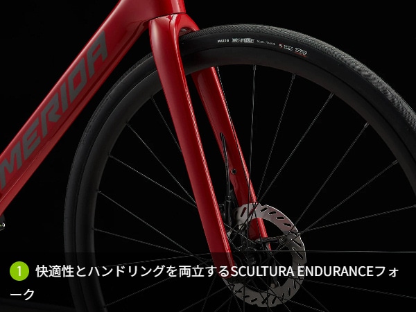 MERIDAが長年に及ぶレーシングバイクの開発で得たノウハウとSILEXの開発で培った快適性とハンドリングを両立したテクノロジーを融合したSCULTURA ENDURANCEはロングライドで体力を温存し、同時に走りの楽しさを味わえる。Shimano 105 Di2を採用し、ストレスの無い変速とブレーキングによりさらなるエンデュランス性能を手に入れたモデル。