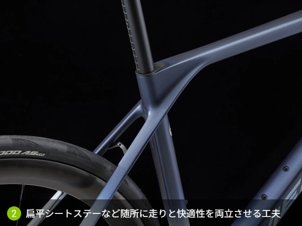 ロードバイクとMTB ハードテールは、リヤサスペンションシステムをもたない。軽量化だけでなく、パワー伝達性能に優れるが、リジッド構造ゆえにあらゆる衝撃が直接ライダーに伝わり、ライダーを疲労させる原因となる。シートステー、チェーンステーの形状を扁平化する事で、路面からの衝撃を吸収して快適性を向上する。