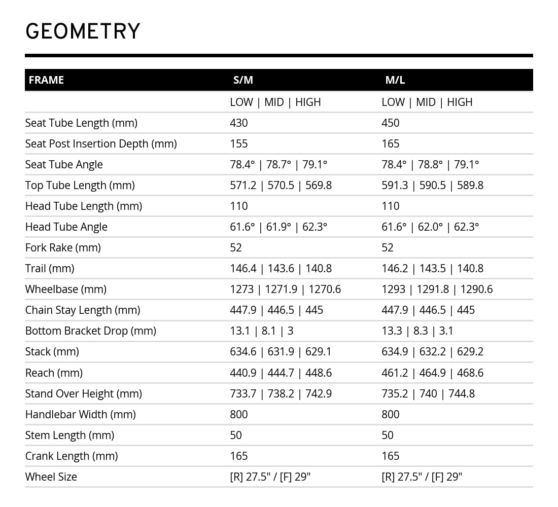| Frame | Advanced-grade composite front and rear triangles, 200mm Maestro suspension, flip chip - headset, flip chip - dropout DH, flip chip - Maestro 3, 12x157mm thru-axle, 27.5 or 29-inch rear wheel compatible ※リアエンド型番:HG0025 |