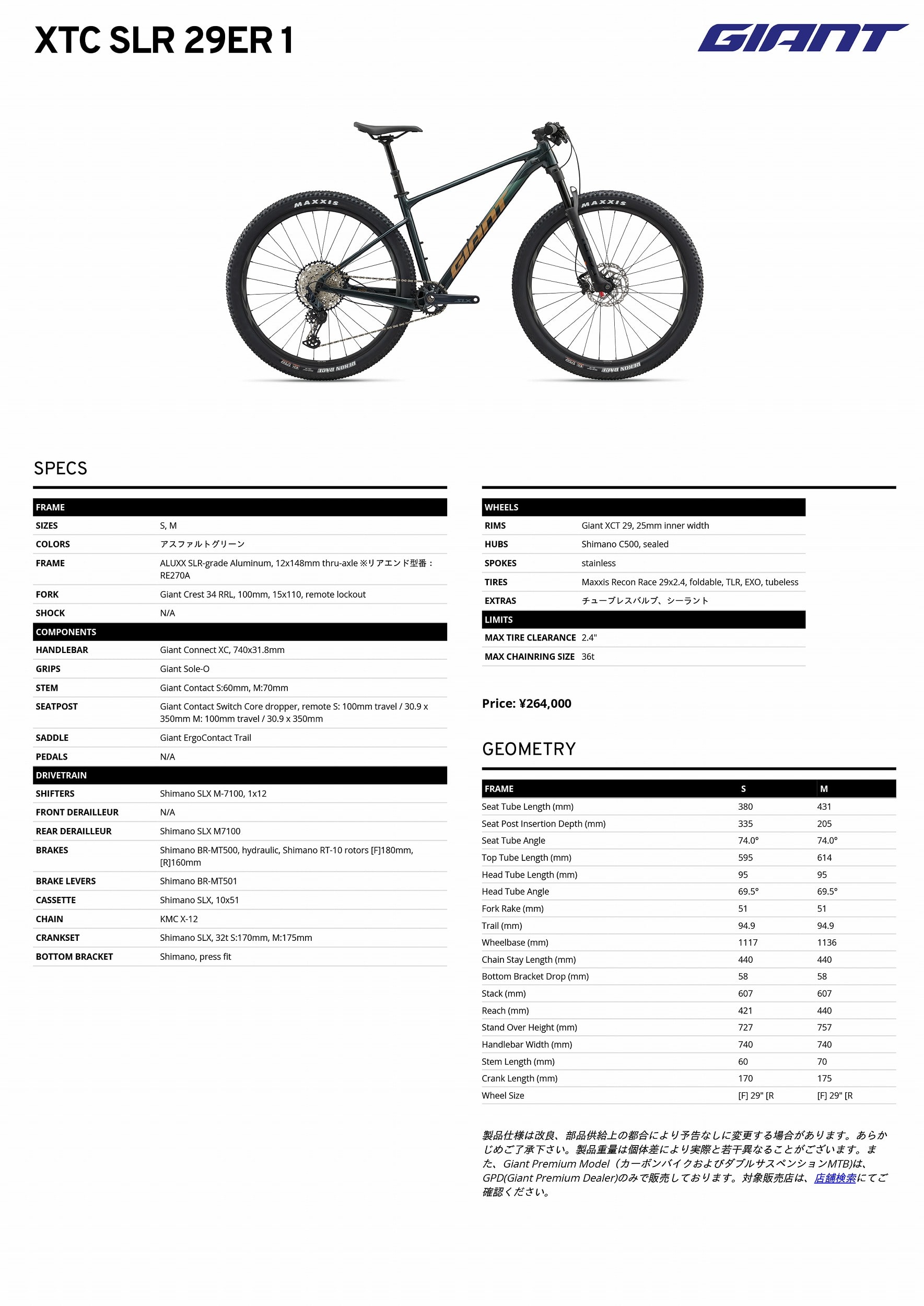 GIANT ( ジャイアント ) マウンテンバイク XTC SLR 29ER 1 ( XTC SLR ツーナイナー 1 ) ASPHALT グリーン 380S (身長目安170cm前後)