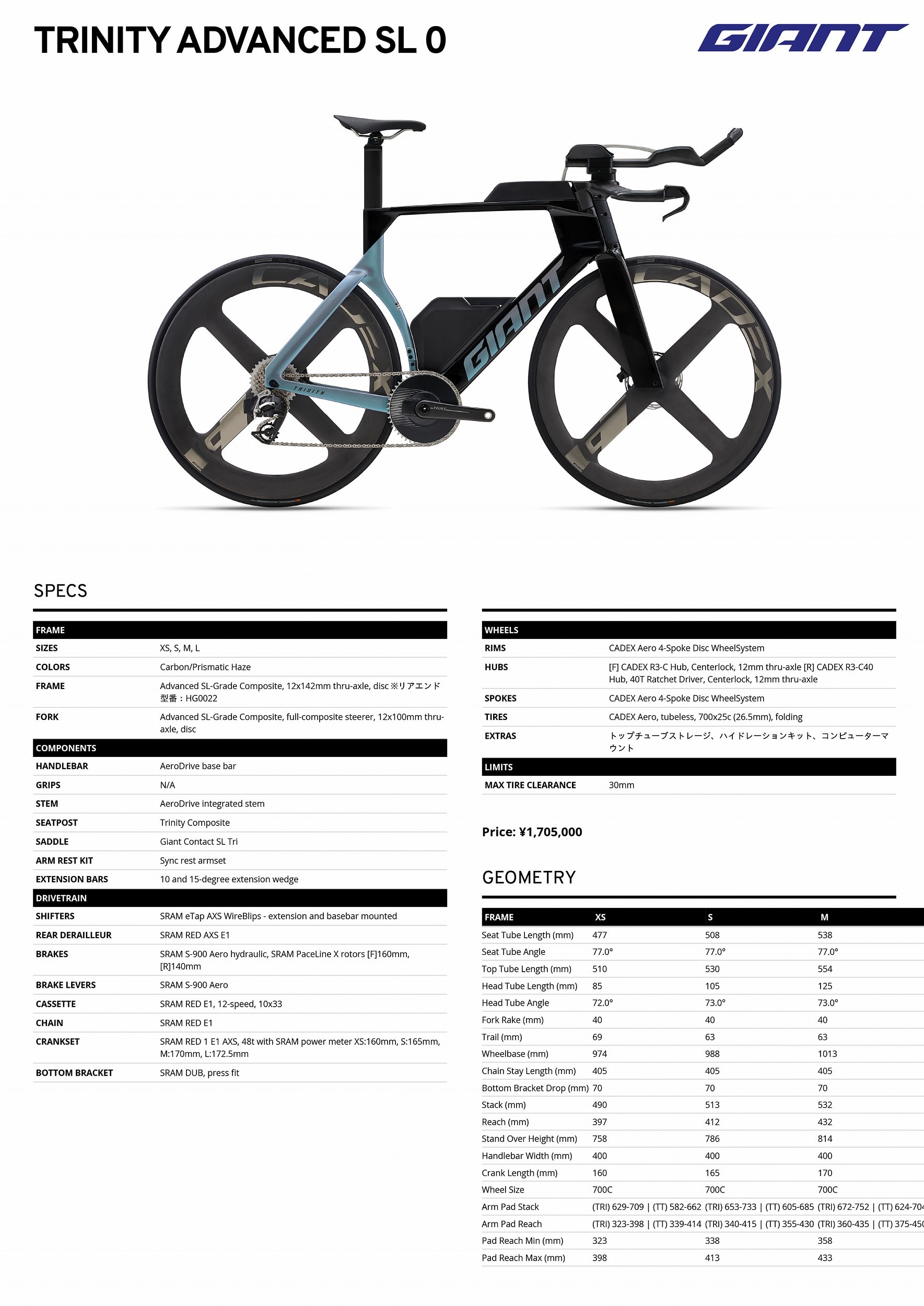 GIANT ( ジャイアント ) トライアスロンバイク・TTバイク TRINITY ADVANCED SL 0 ( トリニティ アドヴァンスド SL 0 ) カーボン プリズマティックヘイズ S (身長目安170cm前後)