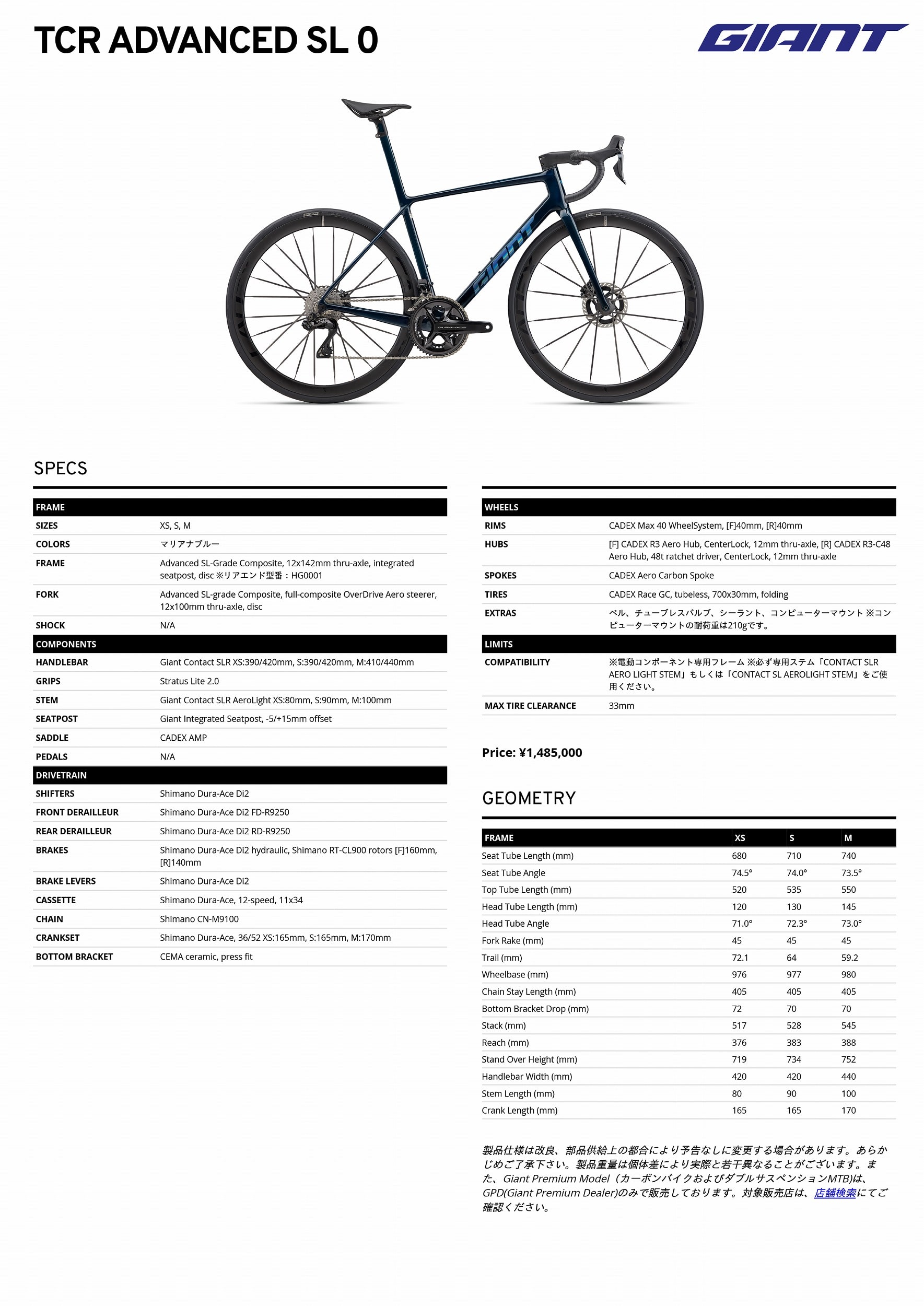 GIANT ( ジャイアント ) ロードバイク TCR ADVANCED SL 0 ( TCR アドヴァンスド SL 0 ) マリアナブルー 680XS (身長目安165cm前後)