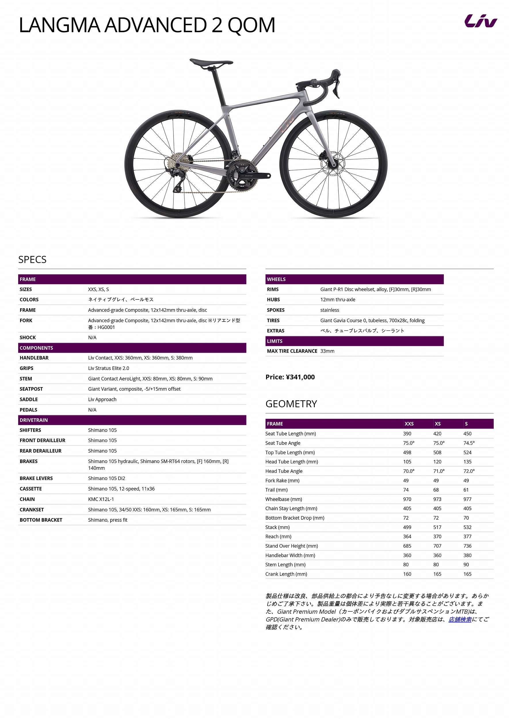 最新の仕様については公式サイト GIANT / Liv の情報をご確認ください