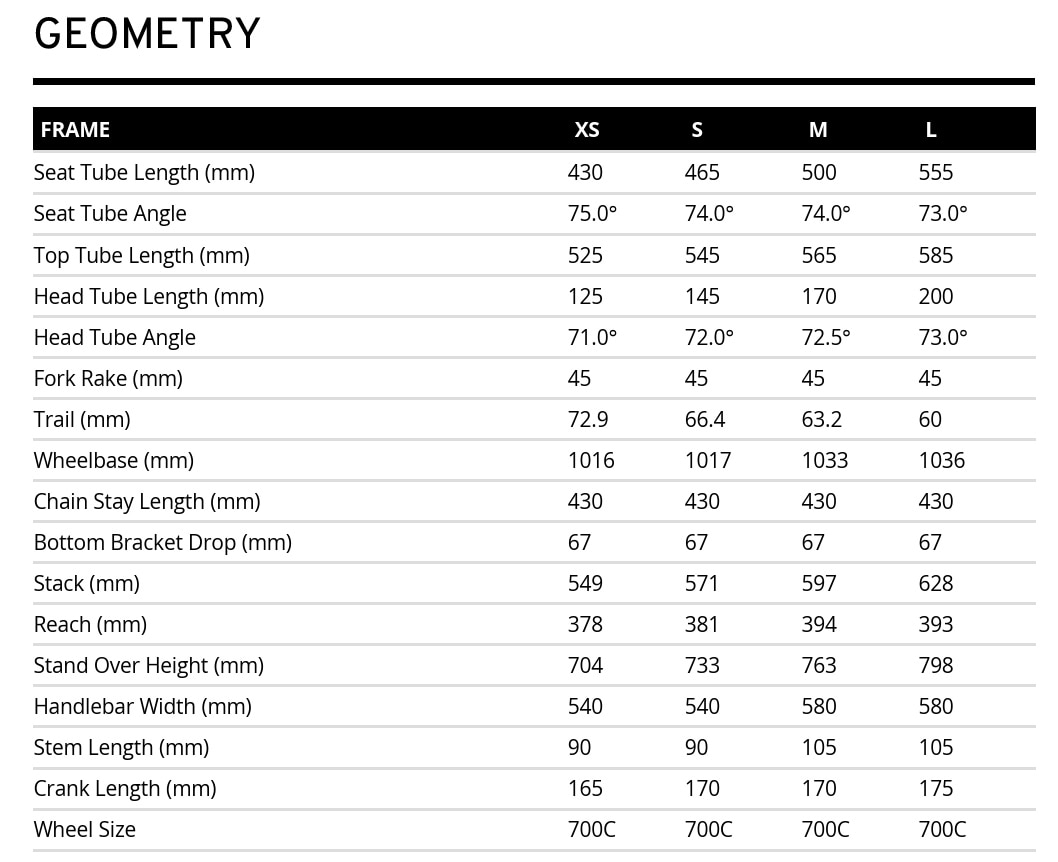 | Handlebar | Aluminum 25.4 XS:540mm,S:540mm,M:580mm,L:580mm |