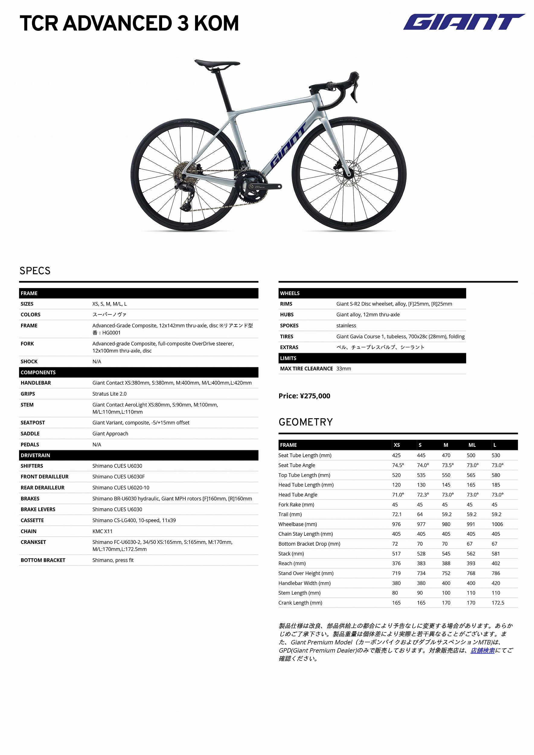 最新の仕様については公式サイト GIANT / Liv の情報をご確認ください