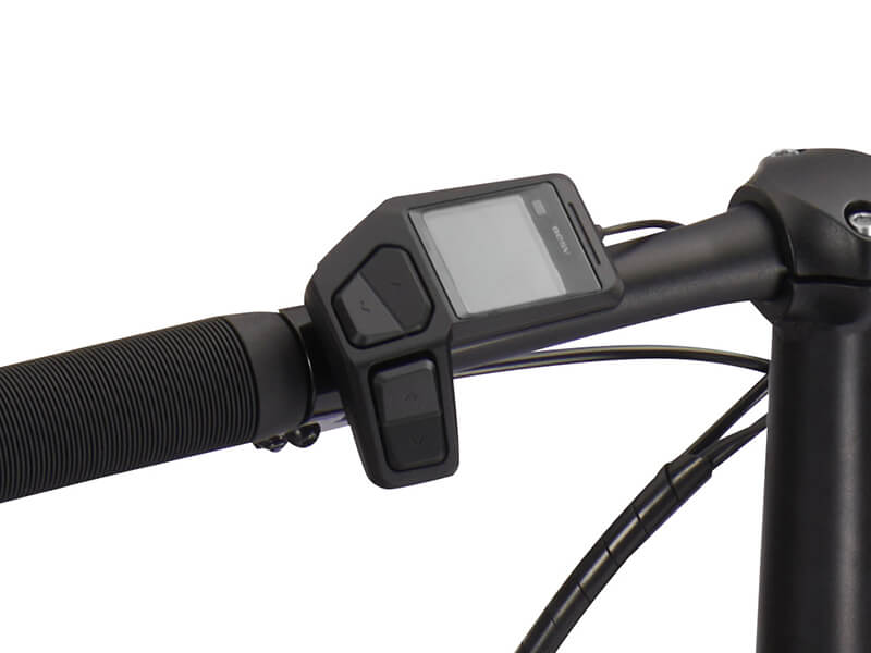 左手グリップ側に設置したディスプレイは、視認性と操作性に優れ、さらにIPX6の防水基準を持ちます。走行中にも直感的な操作を可能とした、インテリジェンスなHMI(ヒューマンマシンインターフェースです。)USB Type-Cポートからの給電も可能です