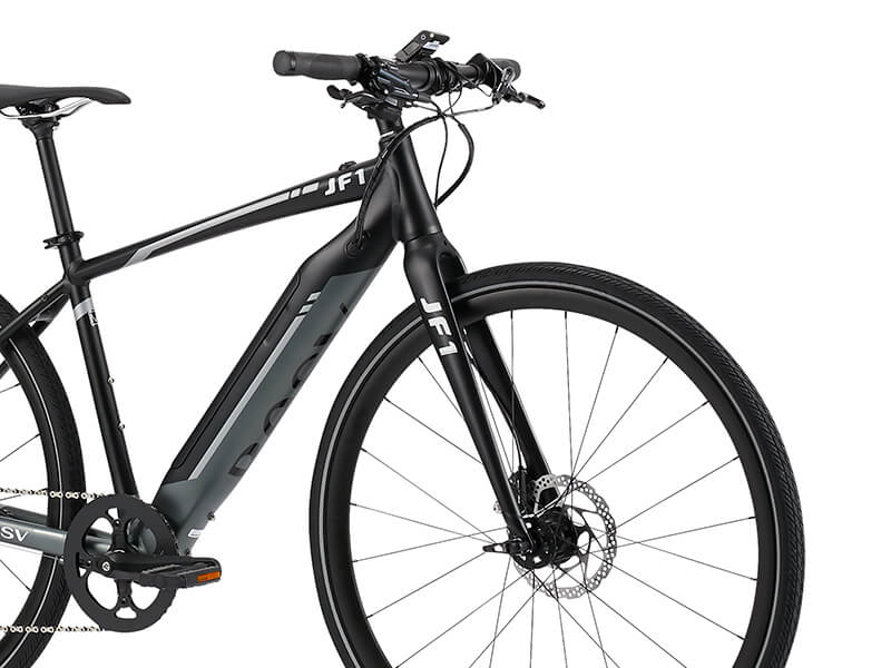 スポーツバイクに興味があってもドロップハンドルは苦手という人にも、操作しやすいフラットバーハンドル。クロスバイク仕様のJF1は、16kgと軽量e-bikeでありながら、スポーツバイクのデザイン性を持ち、フラットバーハンドルでエントリーユーザーにも乗りやすい、コスパの高い1台です。