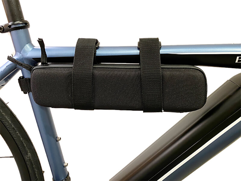 専用のスペアバッテリーをトップチューブに装着する専用バッテリーバッグです。平日は1本バッテリーで通勤・通学に。