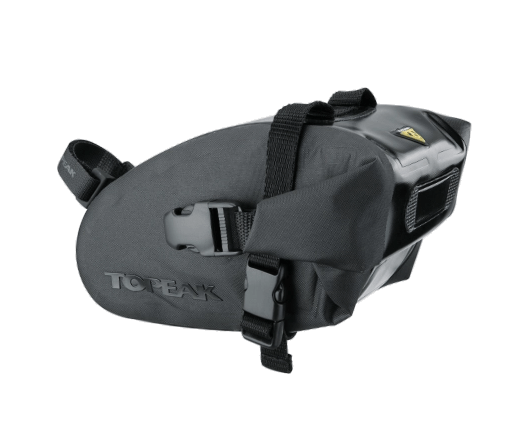 硬めの素材のロールトップと左右ワンタッチ金具で片手でも開閉できちゃうのが良い。容量も大きいので、携帯ポンプ、アーレンキーセット、タイヤレバーとブレード型ロックが入ってまだ何か小物が入りそう。しかも防水、文句なし。
