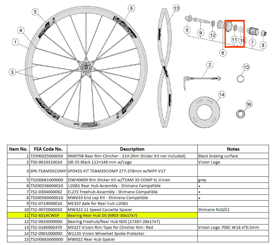 | TEAM 35 Comp SL | 752-6514CWSP | Bearing Rear Hub DS (6903-30x17x7) |