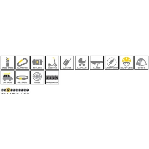 ヘルメット、ホイール、サドル、フレーム、カーラック、キャンプなど。さらにこのロックは工具箱、荷物、スポーツ用品にも使用でき、200kgの強力な引張力があります。