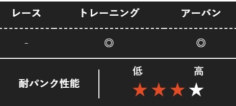 耐パンク強化素材Silkworm(シルクワーム)を採用(一部モデルのみ)する事により優れた耐パンク性能。60TPI構造による滑らかな乗り心地、日常の移動を軽快にサポート。