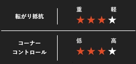 サイドノブは狭い間隔で配置されており、安定したコーナリングパフォーマンスを実現する配置となっています。