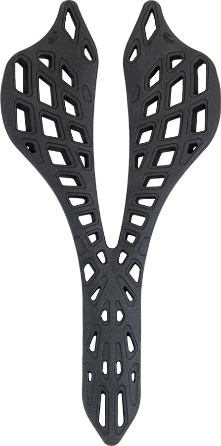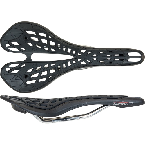 スパイダーツインテール2は骨盤保持ベースが左右に分割された構造とノーズ幅の狭いデザインにより、 ライダーの身体を確実にホールドし、しかもペダリングロスを最小限に抑えます。- フレキシブルコンポジットシェル
