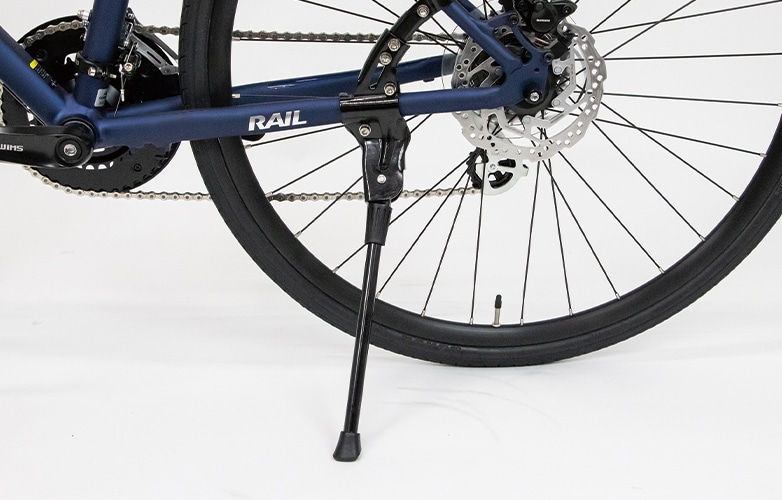 スポーツバイクには付属していないことも多いキックスタンドが標準搭載。
