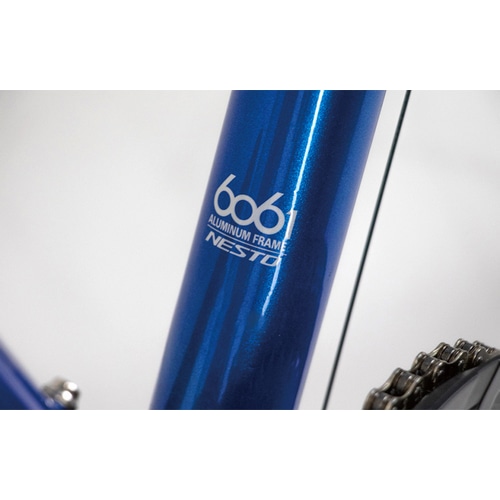 重量剛性比に優れ、柔軟性とのバランスが良い6061 アルミをベースに薄くバテッド加工を施したパイプでフレームを構成し軽量化を追求。さらに、フレーム生産時に2度の溶接を施して強度向上を図り、さらに溶接部に手作業で研磨を施すことで応力集中の原因となる溶接部の急激な肉厚の変化を除去。
