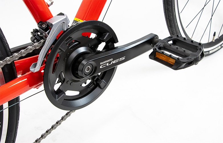 Shimano製の新型コンポーネントシリーズ「CUES」を採用。フロント2速、リア9速の18段変速。