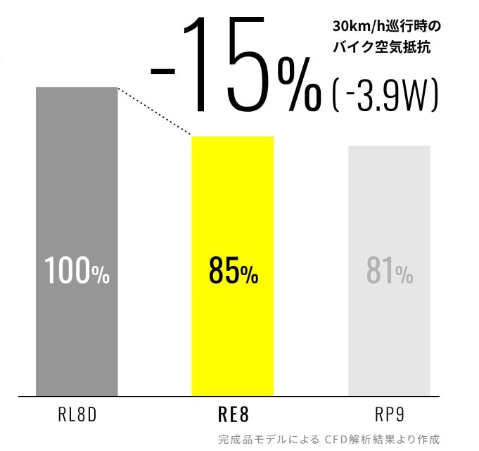 従来のRL8Dに対し、バイクの空気抵抗を15%減少。