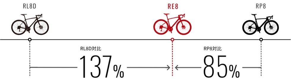「コンフォートモデルの特性」&「レースモデル並みの走行性能」空力・剛性・重量の3要素を高次元でバランスさせることで「快適なのに、速く進む」RE8ならではの走りが結実した。