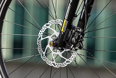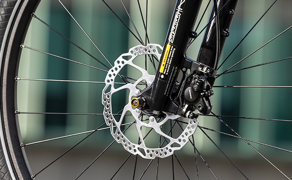 軽い力で確かな制動力を発揮する油圧式ディスクブレーキ