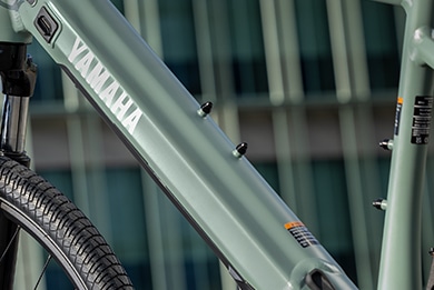 モーターサイクルメーカーであるヤマハのデザイン造形理念を用い、本質的なバイクらしさの中に独自性を追求したデザインフレーム。フレーム剛性と重量バランスを最適化。ダウンチューブの内部をツインチューブ構造にするヤマハ独自のフレーム設計が活きています。