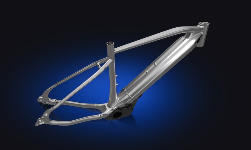 モーターサイクルメーカーであるヤマハのデザイン造形理念を用い、本質的なバイクらしさの中に独自性を追求したデザインフレーム。フレーム剛性と重量バランスを最適化。ダウンチューブの内部をツインチューブ構造にするヤマハ独自のフレーム設計が活きています。